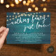 Annoncez votre bonheur toujours après dans le style (Rien de fantaisie, Juste Amour) avec notre moderne rustique turquoise bleu vert bois arrière - plan, lampes à cordes de cottage design mariage elopement de célébration carte d'invitation. Notre carte Happily Ever After Party Celebration Invitation est idéale pour les couples qui ont décidé d'fuir et veulent organiser une fête pour célébrer leur union. Avec son design sophistiqué et ludique, cette invitation vous donnera le ton pour un événement inoubliable. La carte d'invitation présente un design minimaliste et rustique élégant, ajoutant une touche d'élégance intemporelle à votre célébration. Conçu par TeeshaDerrick