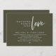 Annoncez et partagez votre bonheur en toute élégance grâce à notre design moderne à thème vert olive (Nothing Fancy Just Love) Carte d'invitation à la célébration mariage. Idéal pour les couples qui ont décidé de célébrer leur meilleure journée. Avec son design sophistiqué et ludique, cette invitation vous donnera le ton pour un événement inoubliable. La carte d'invitation présente un thème design de script moderne et minimaliste, ajoutant une touche d'élégance intemporelle à votre célébration. Conçu par TeeshaDerrick
