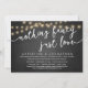 Annoncez votre bonheur toujours après dans le style (Nothing Fancy, Just Love) avec notre moderne rustique arrière - plan en bois de tableau noir, lampes à cordes de cottage design mariage elopement de célébration carte d'invitation. Notre carte Happily Ever After Party Celebration Invitation est idéale pour les couples qui ont décidé d'fuir et veulent organiser une fête pour célébrer leur union. Avec son design sophistiqué et ludique, cette invitation vous donnera le ton pour un événement inoubliable. La carte d'invitation présente un design minimaliste et rustique élégant, ajoutant une touche d'élégance intemporelle à votre célébration. Conçu par TeeshaDerrick