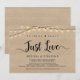 Magnifique carte d'annonce / invitation de mariage intime 'Rien de fantaisiste, juste de l'amour', dans un design rustique en bois de ferme avec guirlandes lumineuses. C'est parfait pour votre réception de mariage et votre fête de célébration post-mariage. Ajoutez vos détails dans la même police / lettrage.