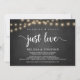 Magnifique Faire simple, juste l'amour, Carte d'annonce / invitation de mariage intime, dans un style rustique de ferme au tableau noir, conception de guirlandes lumineuses. C'est parfait pour votre réception de mariage et votre fête de célébration après le mariage. Ajoutez vos détails dans la même police / lettrage.