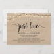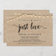 Magnifique carte d'annonce ou d'invitation pour un mariage intime 'Rien de Fantasque, Juste de l'Amour', dans un design rustique en bois de ferme avec guirlandes lumineuses. C'est parfait pour votre réception de mariage et la fête de célébration après le mariage. Ajoutez vos détails dans la même police / lettrage.