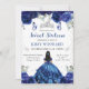 Une invitation rêveuse de Sweet Sixteen de couleur bleue mettant en vedette une belle princesse aux cheveux noirs dans une robe de bal fluide, entourée de fleurs luxuriantes bleues et violettes, de papillons et de verdure douce à l'aquarelle. Un motif de diadème délicat couronne le design, tandis qu'une typographie élégante à polices mixtes met en valeur la célébration de l'événement avec une touche moderne et féminine. La riche palette bleue, les détails floraux doux et la silhouette gracieuse de princesse créent une invitation magique et haut de gamme parfaite pour une célébration inoubliable de Sweet 16.