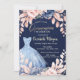 Elégante robe bleue et fleurs sur un arrière - plan bleu marine.