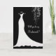 Robe de mariée blanche avec de jolies fleurs et papillons sur fond noir Carte de demande de demoiselle d'honneur.. Vous pouvez ajuster le texte selon vos besoins. Certaines images proviennent du design Riefka sur www.mygrafico.com