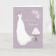 Robe de mariée blanche, gâteau de mariage et carte de voeux de demoiselle d'honneur avec fleurs.. Vous pouvez ajuster le texte selon vos besoins.