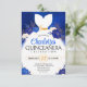 Embrassez votre âme de reine et annoncez votre quinceanera avec style avec cette invitation enchantée pour Robe de princesse blanche florale bleu royal Quinceañera ! Ce design captivant mélange la majesté du bleu royal avec des fleurs blanches délicates et la silhouette d'une robe de princesse blanche fluide, créant une invitation inoubliable pour votre célébration magique.