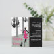 Invitation de fête d'anniversaire à numéro quelconque pour femme chic avec lustre et robe de soirée rose chaud et chat de mode. Cette conception élégante et chic convient à une fête d'anniversaire pour femme ou adolescente.