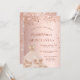 Une invitation moderne, élégante et glamour pour une Quinceañera, 15ème anniversaire. Un arrière - plan d'or faux rose avec des étincelles faux et une robe d'or rose. Le nom est écrit avec un rose moderne de couleur or foncé à la main écriture style. Personnalisez et ajoutez les détails de votre fête.