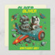 Invitation Robot Rétro Personnalisable et Chat dans l'Espace.