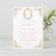 At the heart of the invitation lies a hand-painted monogram crest, inspired by the floral beauty of the Rococo era. The intricate design features a harmonious blend of blue, gold, soft pinks, and greenery. This crest serves as a stunning centerpiece, symbolizing the unity and love shared by the couple.
