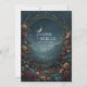 Transport your guests to a fairytale world with this enchanting landscape design. The artwork features a "window to the world" concept, framed by a heavy, lush archway of multi-colored blooms and verdant foliage intermixed with an antique gold border. Through this botanical gateway, a breathtaking vista is revealed, showcasing majestic peaks, a winding valley stream, and a dense pine forest bathed in the glow of a crescent celestial body. The moody, atmospheric lighting creates a sense of wonder and romance, perfect for a couple who loves the outdoors. This dreamy illustration is a flawless choice for a destination wedding in a national park or a rustic woodland ceremony. You might also select this scenic aesthetic for a twilight engagement party, a sophisticated sweet sixteen with a fantasy theme, or a milestone anniversary celebration. This picturesque landscape border is also perfectly suitable for travel agency promotional flyers, luxury glamping retreat brochures, or fantasy book launch invites.