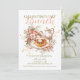 The background remains clean and luminous, allowing the illustrated elements to float gracefully while maintaining visual balance and clarity. Painterly textures, gentle shading, and organic transitions give the illustration a handcrafted, heirloom-inspired appearance. The overall color palette blends warm ivory, blush, champagne gold, and soft greenery, creating a romantic yet inviting atmosphere suited to daytime celebrations. Typography styling is elegant and flowing, echoing the curves of the florals and teaware while keeping the layout harmonious and readable.