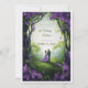 Entrez dans un conte de fées avec cette invitation de mariage d'une beauté à couper le souffle. Parfaite pour un mariage inspiré de la nature ou d'un jardin, cette invitation présente une illustration romantique d'un couple se tenant par la main et marchant à travers une forêt enchantée. L'arche florale violette riche crée un cadre époustouflant, menant l'œil vers un arrière-plan doux et brumeux qui se sent à la fois mystique et invitant.