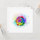 Grand rose fleuri avec pétales arc-en-ciel sur arrière - plan blanc, peint sur des éclaboussures de peinture colorée et lumineuse. 3d
