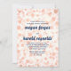 Confetti rose et rousse point répétition invitation dîner avec texte bleu marine.