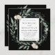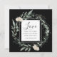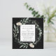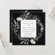 Faire-part de mariage chrétien carré moderne noir et blanc avec une citation inspirante Écriture représente une belle couronne botanique florale d'aquarelle avec des roses blanches simples et de la verdure sur un arrière - plan noir. Il présente l'introduction de la Bible Verse Ephésiens 5:31, "Deux deviendront un." Le côté arrière a une partie de la Bible Versets 1 Corinthiens 13:7-8, "Amour, espère toutes choses, endure toutes choses, Amour n'échoue jamais." Ce côté fait un beau gardien. S'il y a quelque chose que vous ne voyez pas ou si vous voulez des changements, veuillez me contacter avec le bouton conversation sur la page Zazzle.