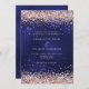 Invitation Rose bleu marine parties scintillant d'or mariage