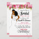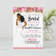 Cette élégante invitation à la douche nuptiale à fleurs rose vif présente une mariée afro-américaine vêtue d'une robe blanche contemporaine. Envoyer une invitation qui est mignonne et classe.