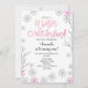 Invitation d'anniversaire d'ONEderland d'hiver première avec l'arrière - plan blanc et flocons de neige parfaits pour l'anniversaire d'hiver.