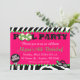 Laissez votre petite fille inviter ses invités à sa réception au bord de la piscine que la fête d'anniversaire d'une manière d'amusement avec ces derniers a personnalisé les invitations roses d'impression de zèbre.