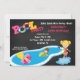 Commencez votre célébration outre de la droite avec cette invitation adorable. Perfectionnez pour la réception au bord de la piscine de cette fille d'anniversaire. Il a un arrière - plan noir de tableau. Il y a une grande piscine avec une fille adorable et mignonne se tenant à côté de la piscine dans un magma de l'eau. Elle a des cheveux blonds et un maillot de bain de roses indien. Dans la piscine est une fille d'une chevelure blonde mignonne flottant dans un radeau. À côté de elle est une fille d'une chevelure brune adorable flottant autour sur un tube vert de point de polka. À travers le dessus de l'invitation est la réception au bord de la piscine de mot. Les deux o dans la piscine sont les tubes colorés. Vérifiez les nombreux autres produits et conceptions dans cette ligne de réception au bord de la piscine. illustrations de ©JW