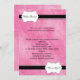Cette invitation précieuse de baby shower est une manière merveilleuse d'inviter vos invités à vous joindre en célébrant votre nouveau venu. Cette conception a un arrière - plan rose avec une frontière noire au dessus et au bas. Dans le coin gauche supérieur il y a une boîte blanche de feston qui indique le baby shower. Dans le coin inférieur droit il y a une boîte blanche de feston qui indique que c'est une fille. Vos détails de partie entrent au centre et sont complètement personnalisables. Ajoutez juste vos détails de douche et vous êtes prêts à aller !