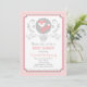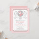 Invitation mignonne de baby shower pour une fille avec le petit renard rose et les éléments décoratifs gris.