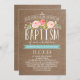 Cette invitation de baptême comporte de belles fleurs watercolored et un mélange de la typographie moderne, toute sur un arrière - plan à la mode de toile de jute. Envoyez à vos invités un invitation qu'ils n'oublieront pas ! Pour une invitation bien plus mémorable choisissez une forme découpée avec des matrices, un papier texturisé ou un double papier épais.