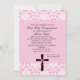 Commencez votre célébration par cette invitation élégante pourtant savoureuse pour cela sainte communion spéciale de filles. Elle a une damassé rose sur le dessus et le bas de l'invitation. Sur le fond au centre il y a une croix noire avec un coeur rose au centre de lui. Vérifiez les nombreux autres articles dans cette ligne telle que des étiquettes, affranchissement, remerciez vous des notes, et plus.