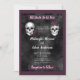Invitation de mariage sombrement belle avec la phrase 'Jusqu'à ce que la mort nous sépare', crânes de squelette avec des roses et un fond noir sombre sur fond violet. Le dos de l'invitation comporte des crânes ensemble. Parfait pour un mariage gothique ou Halloween.