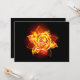 Rose en fleurs issue du feu et de la flamme sur fond noir.