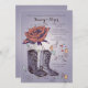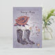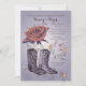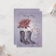 Célébrez un événement spécial avec un thème du Sud-Ouest ? Cette belle invitation est parfaite pour toute célébration joyeuse. Elle présente une rose ouverte avec une paire de bottes western et des cœurs et des volutes fantaisistes.