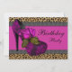 Chaussures à talons hauts en dentelle noire et fuchsia avec invitation modèle pour fête d'anniversaire thème rose et léopard rose vif. Cette élégante invitation de fête thème léopard rose vif est facilement personnalisable pour votre événement en choisissant simplement le bouton "Personnalisez-le !" pour commencer à ajouter les détails de votre événement, le style de police, la taille et la couleur de la police, ainsi que le libellé. Veuillez noter que toutes les cartes et conceptions d'invitations que vous trouverez sur Zazzle sont des graphiques imprimés sans véritables bijoux, rubans, reliefs, gaufrages ou pièces ou éléments ajoutés.