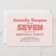 Fêtez son grand jour avec l’invitation de cette fille à la fête de septième anniversaire! Doté d'une typographie rose "sept", d'un joli motif floral et d'un modèle simple, ce design est parfait pour une célébration moderne et minimaliste. Le script de calligraphie blanc ajoute une touche ludique, tandis que les fleurs chic élégantes apportent une touche fantaisie élégante. Personnalisez aujourd'hui ce charmant et amusant invitation pour une fête d'anniversaire mémorable !