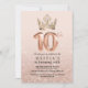 Invitation minimaliste moderne 10ème anniversaire avec police rose et calligraphie moderne. Couronne élégante avec saphirs élégants et pierres précieuses en aquarelle sur un arrière - plan rose.