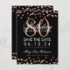 Invitation Rose Gold Black 80th Birthday Save Date Confetti