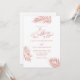 Parfait pour les mariages de destination à la plage, cette invitation de mariage comporte des feuilles tropicales rose gold avec une typographie script tendance et amusante.