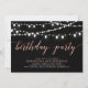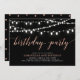Célébrez votre journée spéciale avec cet élégant modèle d'invitation à la fête d'anniversaire moderne. Ce design présente de belles lumières à cordes avec un thème rose or et noir couleur. Vous pouvez personnaliser le texte à n'importe quel âge / date d'anniversaire. D'autres invitations pour les anniversaires d'adultes et fournitures de fête sont disponibles dans ma boutique BaraBomDesign.