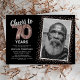 Élégante invitation de fête de soixante-dixième anniversaire avec un arrière - plan noir élégant qui peut être changé à n'importe quelle couleur, une photo de la fille / garçon anniversaire, parties scintillant brillante or rose, soixante-dix roses ballon d'hélium en or, et un modèle de texte de célébration de 70e anniversaire moderne qui est facile à personnaliser.