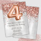 Rose Gold Silver 4th Birthday Party Invitation et or rose élégant moderne 4th anniversaire invitation pour une fille de 4 ans avec écriture de script moderne et des ballons de papier amusant.