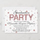 Festive plaisir rose Gold parties scintillant confetti, élégante et féminine l'invitation de la fête de graduation pour elle alors qu'elle passe à la prochaine phase de la vie. Glitterie brillant blanc et rose rose or motif imprimer pois toile de fond. Elégant et élégant pour une soirée ludique en plein air ou un plaisir décontracté de se réunir.