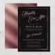 Annoncez votre mariage récent et invitez votre tribu à célébrer avec vous avec cette carte d'invitation audacieuse et festive. En utilisant deux polices complémentaires, vos détails peuvent être facilement ajoutés aux champs de modèle fournis. Cliquez pour personnaliser davantage selon vos besoins ; toutes les couches ont été ajoutées séparément pour vous offrir un contrôle maximum sur la conception. Sur le fond noir, j'ai placé un badge rectangle noir qui est entouré de deux bordures métalliques fantaisie rose doré élégantes. Le fond noir et le rectangle peuvent être changés en n'importe quelle couleur que vous préférez. Le dos était recouvert d'un graphique rose doré métallisé qui se coordonne parfaitement avec le double contour du cadre de l'autre côté. N'hésitez pas à me contacter pour des demandes spéciales ou une aide à la personnalisation.