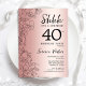 Rose Gold Surprise 40th Birthday Party Invitation. Design féminin de glam avec accents botaniques et police de script de typographie. Carte invitation florale simple parfaite pour une célébration anniversaire surprise femme élégante. Peut être customisé à n'importe quel âge. Invitations Zazzle imprimées ou téléchargement instantané modèle imprimable numérique.