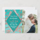 Élégant, chic et moderne avec une ambiance rétro, faux imprimé rose or géométrique en forme de diamant sur fond sarcelle vert et faux marbre rose or avec des découpes en forme de diamant mauve et rose blush, carte de mariage Save-the-Date. Ce design classique et sophistiqué est parfait pour le couple trendy et élégant qui se marie. Personnalisez avec votre propre message sur le devant ainsi qu'un monogramme personnalisé au dos. Conception d'impression photo personnalisable.