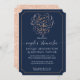 "Rose de marine Parties scintillant or Script Love Couple Shower Invitation." Un arrière - plan bleu marine profond démarre le script de Calligraphie écrit à la main qui a été écrit par Audrey Jeanne, puis créé dans un texte rose de parties scintillant en or qui est entouré de touches de brosse tourbillonnante de défilement rose en forme de coeur. L'envers est un look de parties scintillant d'or rose. Toutes les oeuvres ont été créées par Audrey Jeanne Roberts, artiste et designer de renommée internationale, copyright.