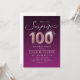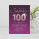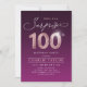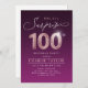 Modern Shhh, c'est une surprise 100e anniversaire invitation de fête comprend script élégant et faux rose or parties scintillant numéro 100 et vos détails de fête sur le velours rouge violet couleur arrière - plan, simple et élégant, grande surprise adulte invitation d'anniversaire pour hommes et femmes.