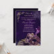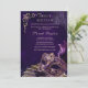 Invitation élégante de Sweet 16 sur le thème du masque vénitien de luxe avec une palette de couleurs dramatiques de minuit, dans les tons de pourpre et de noir. Des tons d'améthyste riches, des détails de masque ornés et une typographie raffinée créent une atmosphère mystérieuse et sophistiquée parfaite pour une célébration importante.
