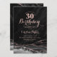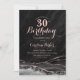 Invitation d'anniversaire 30 ans à l'agate noire et rose or. Design moderne élégant avec fond de géode d'agate marbrée à l'aquarelle, rose or à paillettes faux et police de caractères script. Carte d'invitation tendance parfaite pour une célébration d'anniversaire de femme stylée. Invitations Zazzle imprimées ou modèle numérique de template imprimable instantané.