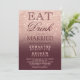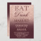 Prenez un verre et soyez marié typographie de scénario sur une parties scintillant d'or fausse rose moderne, originale et simple, à l'ombre du faire-part de mariage sur un arrière - plan de couleur merlot bordeaux entièrement personnalisable. Idéal pour mariage à thème chic et élégant